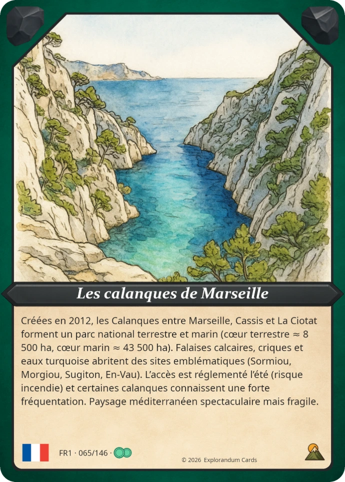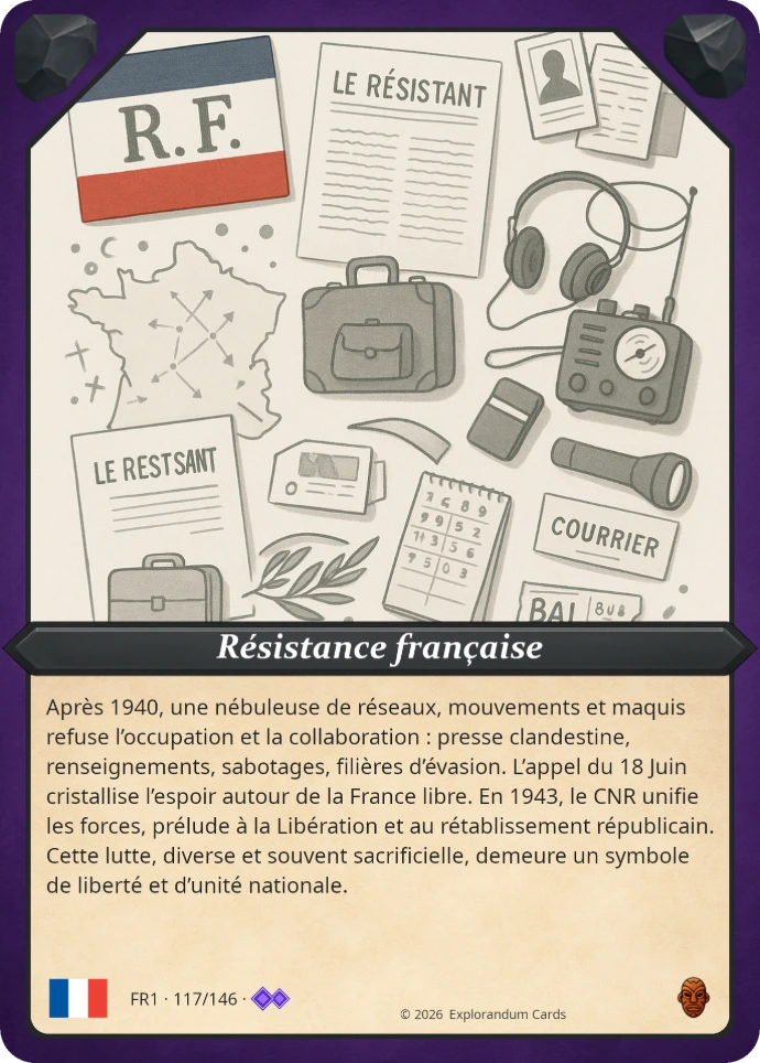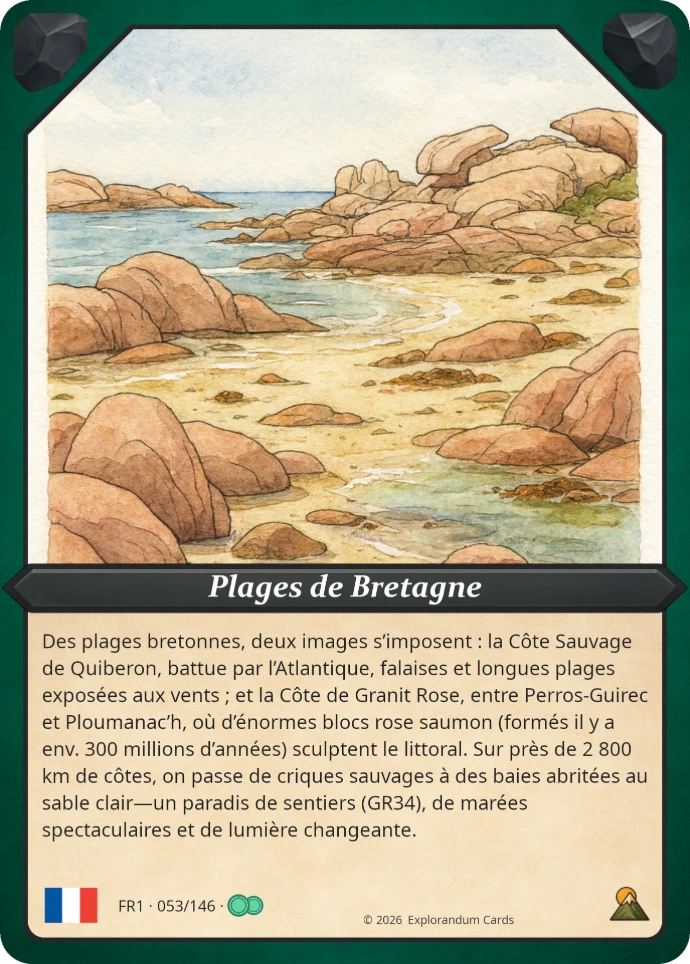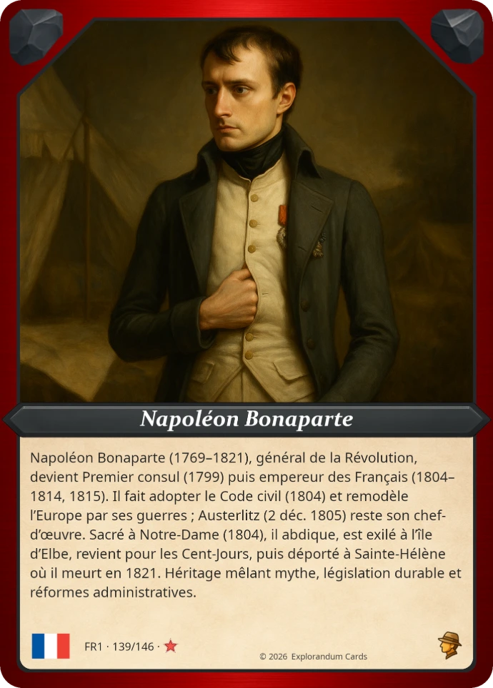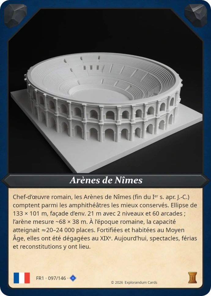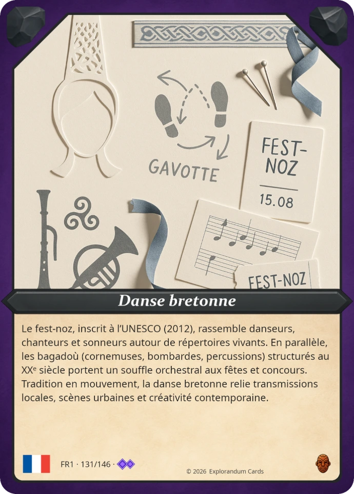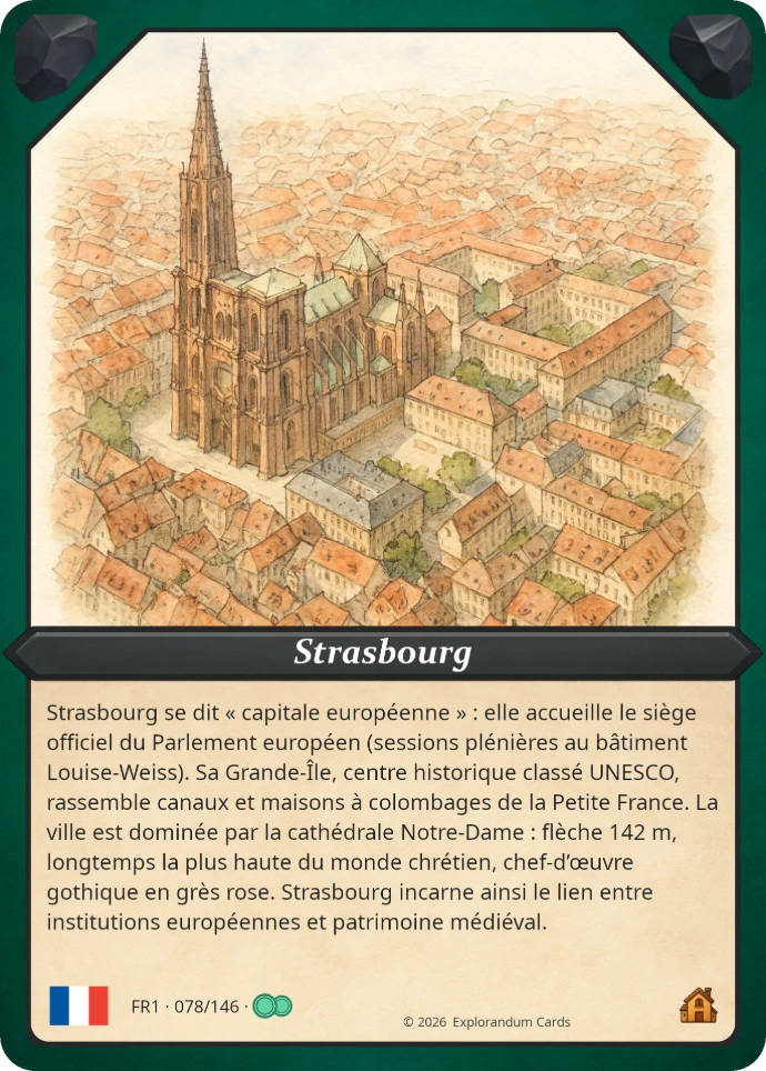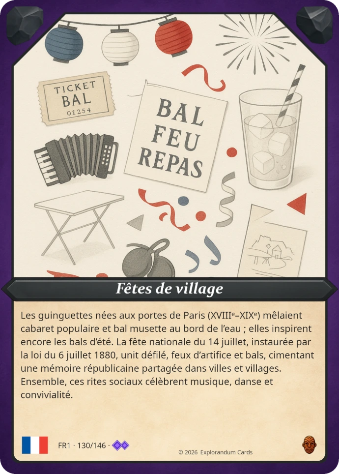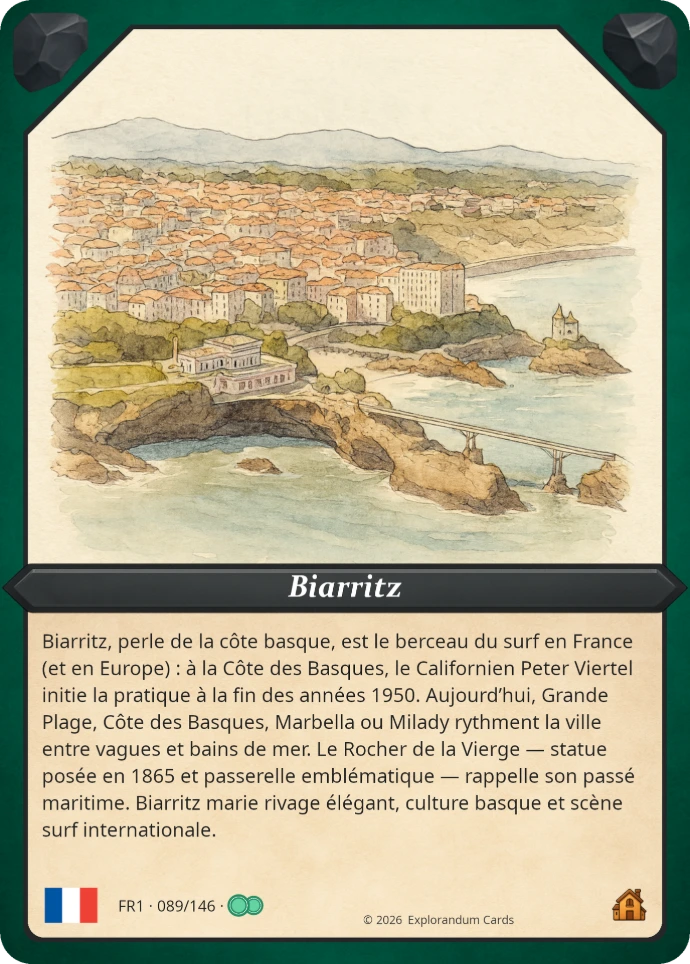 Bienvenue dans la première série de cartes à collectionner Explorandum, dédiée aux richesses culturelles de la France. Ce set inaugural célèbre la diversité du patrimoine français, des montagnes alpines aux côtes méditerranéennes. Collectionnez les saveurs emblématiques, explorez les régions et plongez dans l'histoire de plats qui ont façonné l'identité nationale. Que votre voyage de collection commence ici !