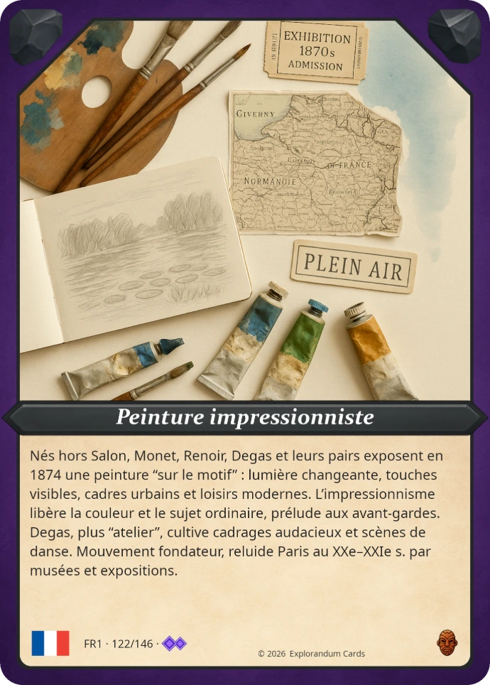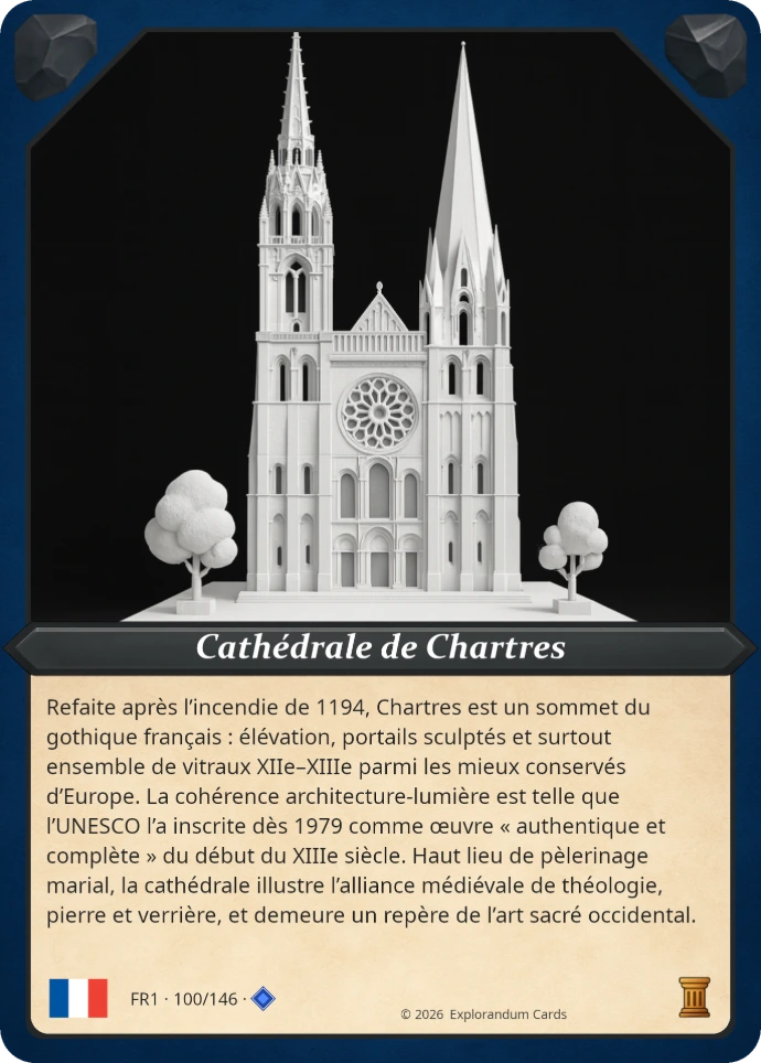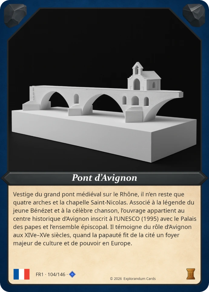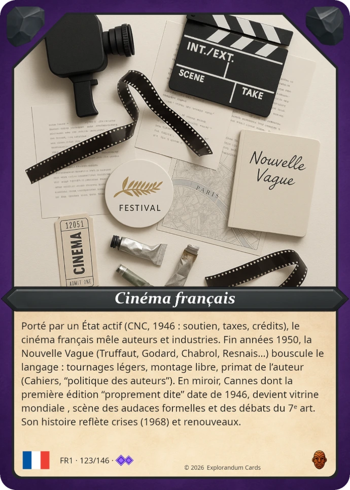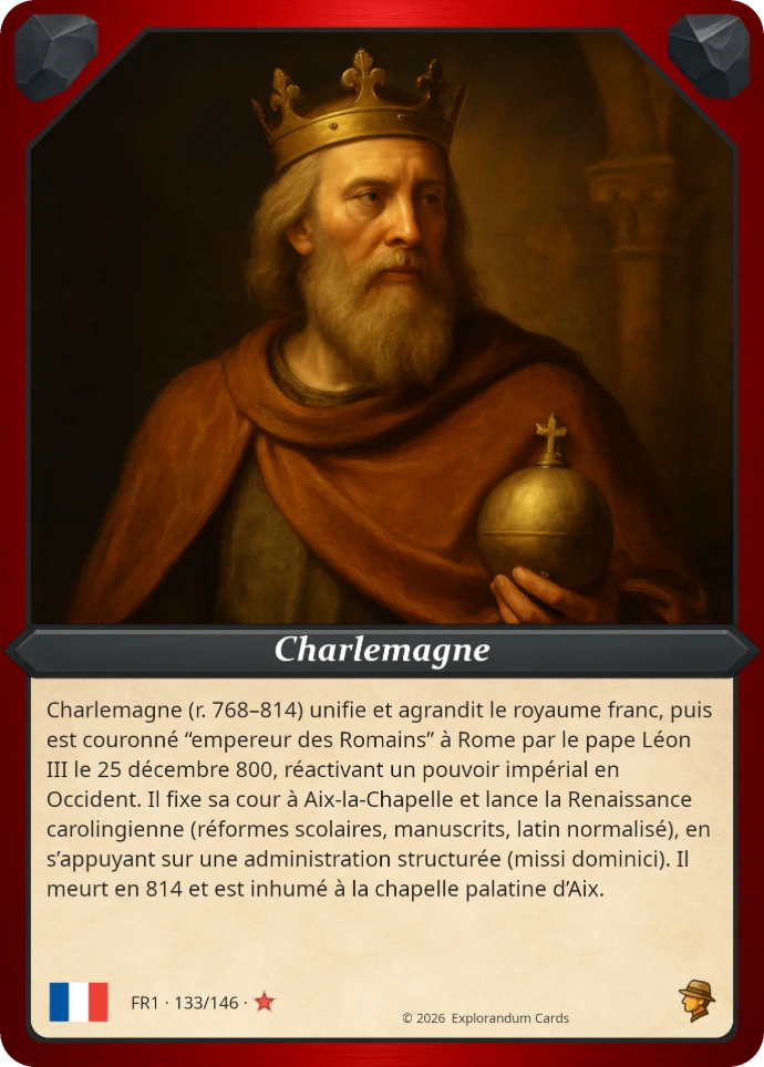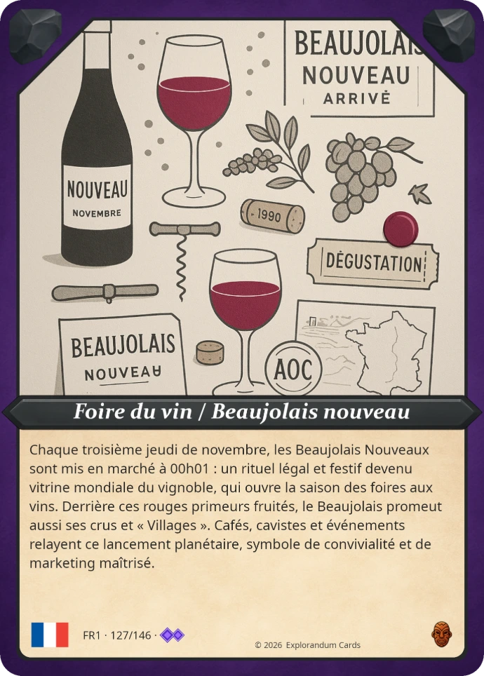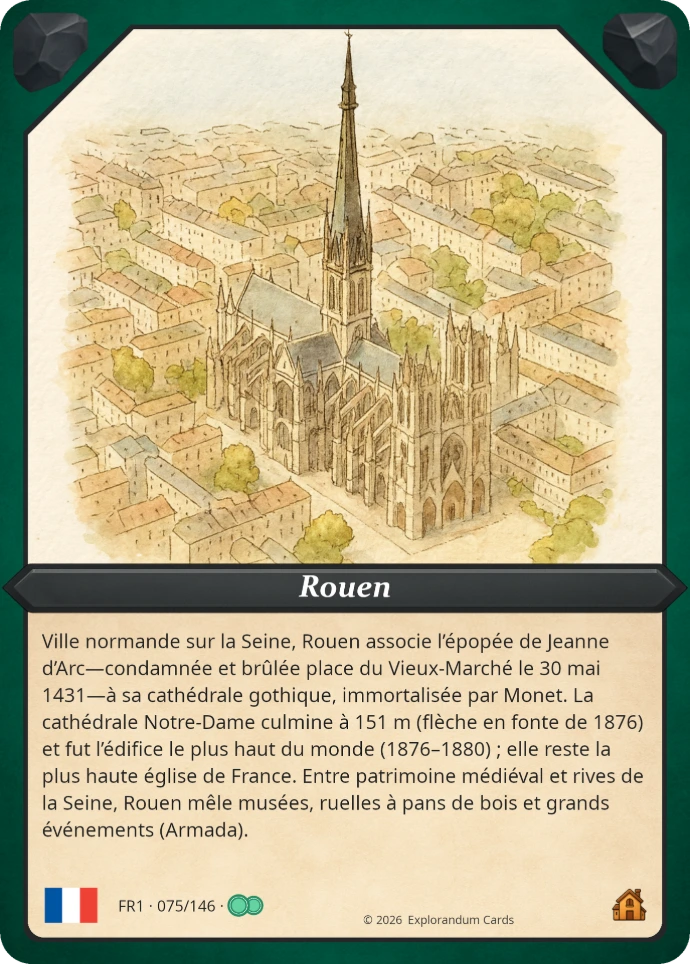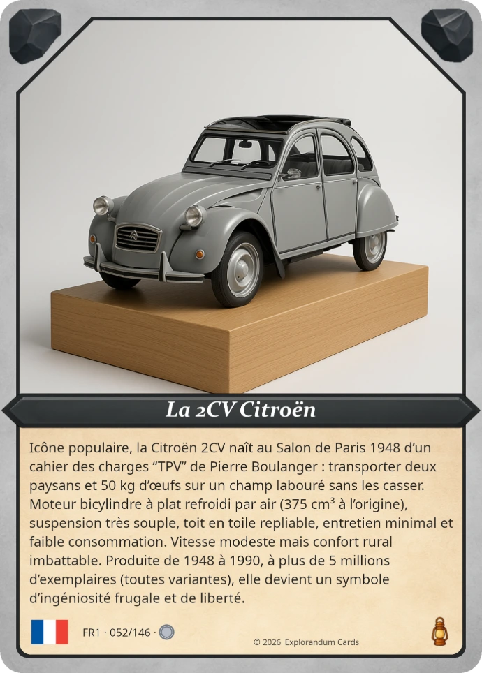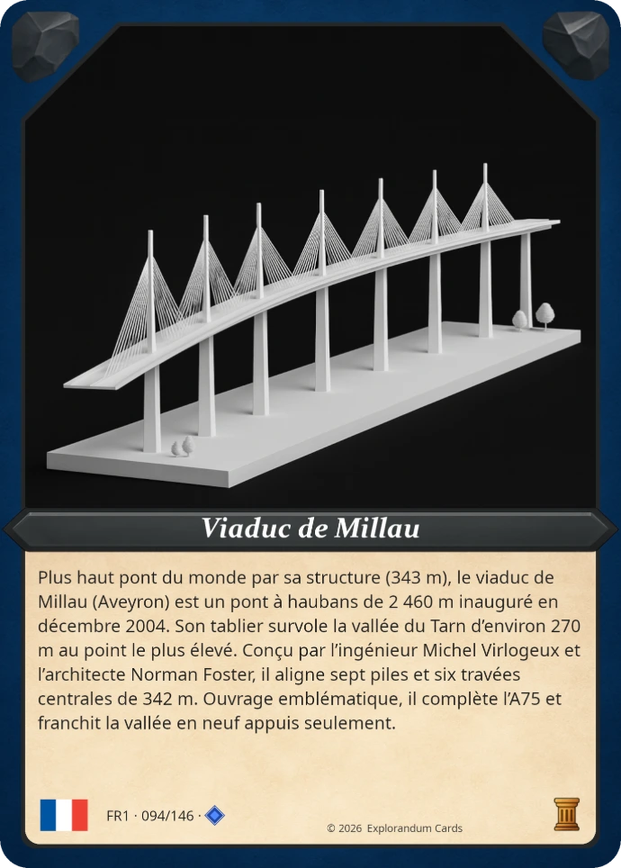 Bienvenue dans la première série de cartes à collectionner Explorandum, dédiée aux richesses culturelles de la France. Ce set inaugural célèbre la diversité du patrimoine français, des montagnes alpines aux côtes méditerranéennes. Collectionnez les saveurs emblématiques, explorez les régions et plongez dans l'histoire de plats qui ont façonné l'identité nationale. Que votre voyage de collection commence ici !