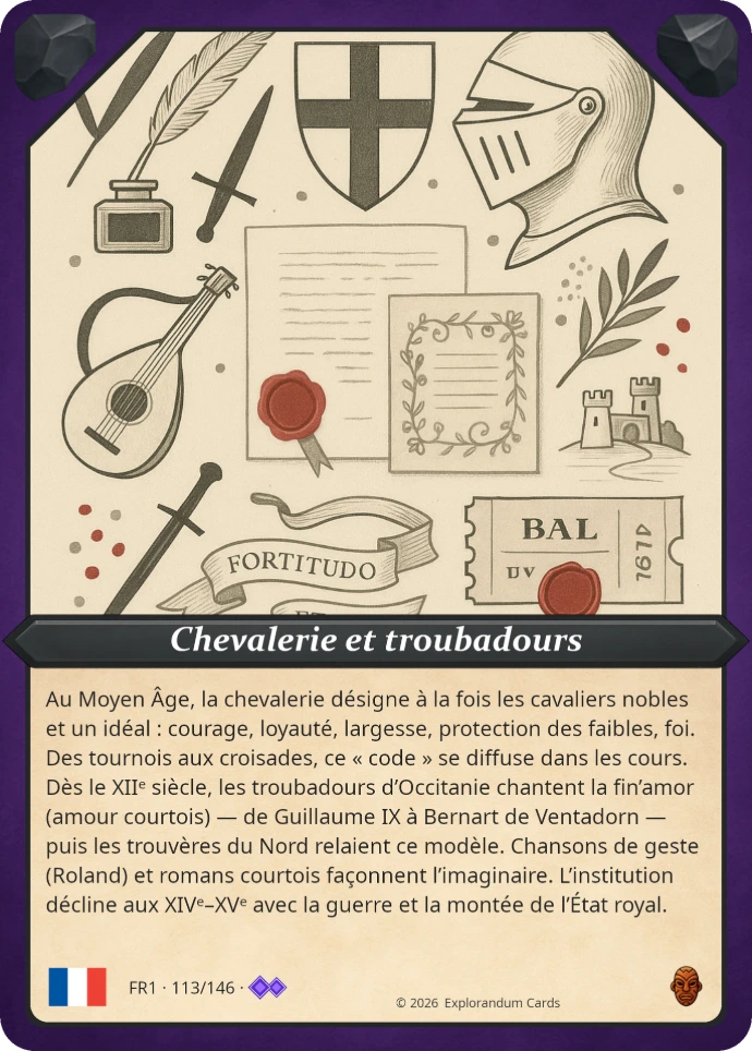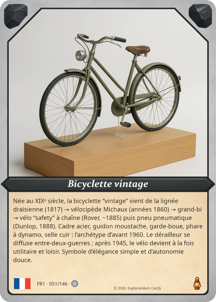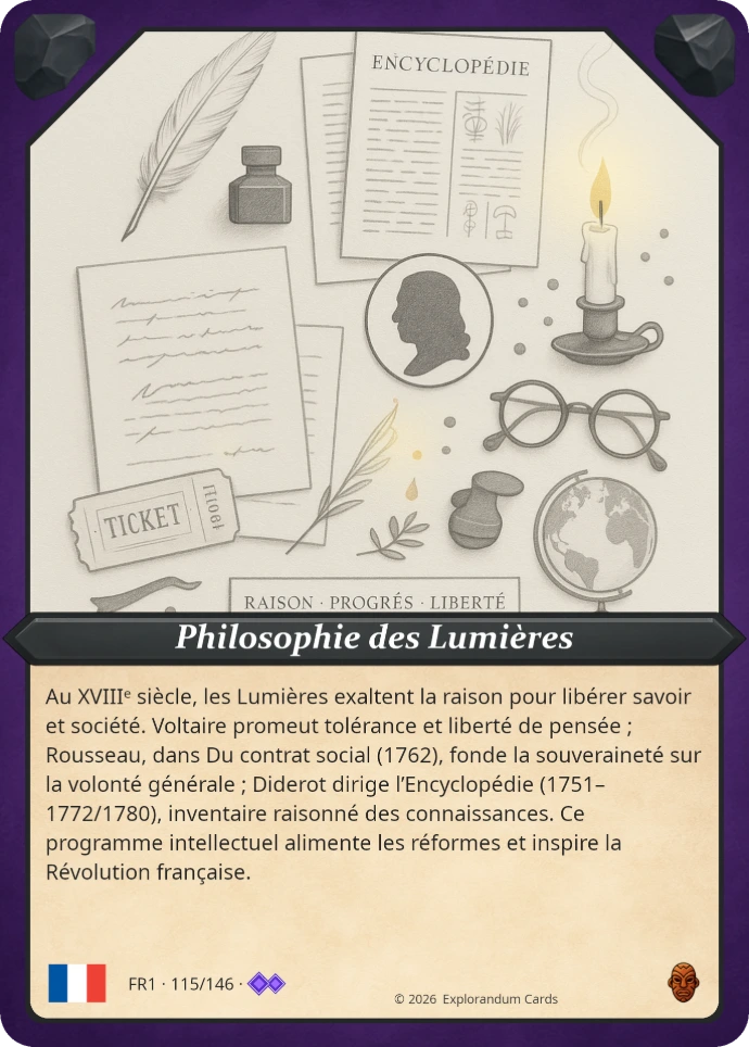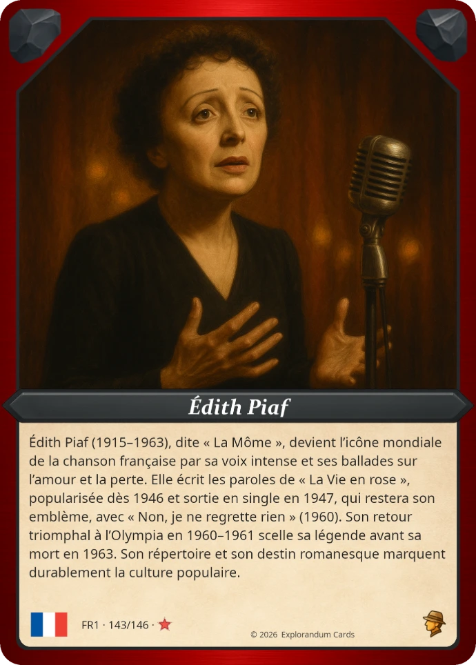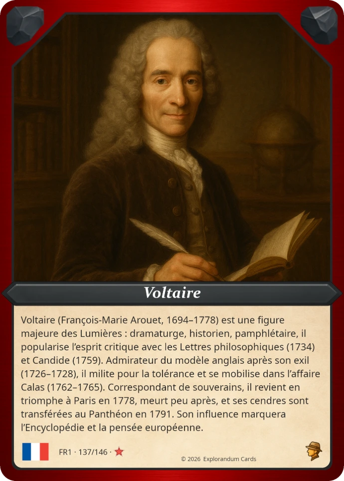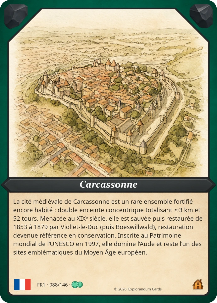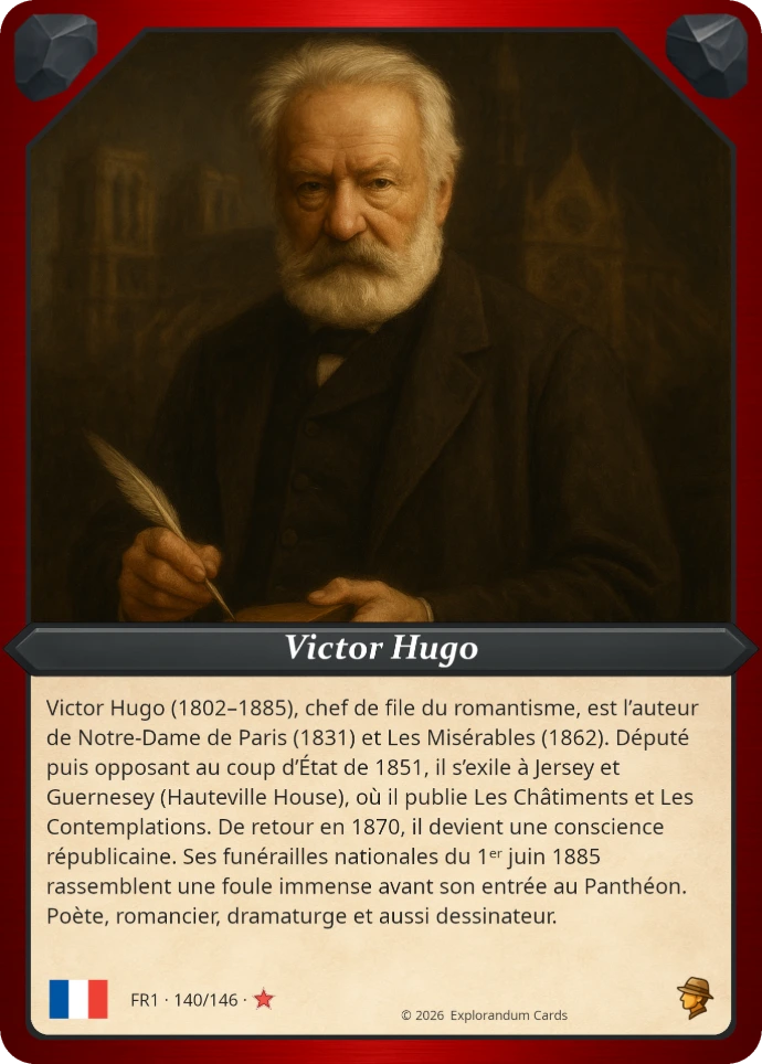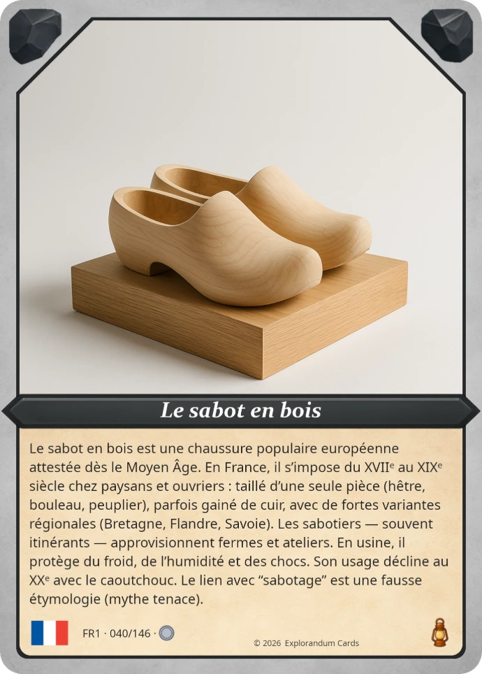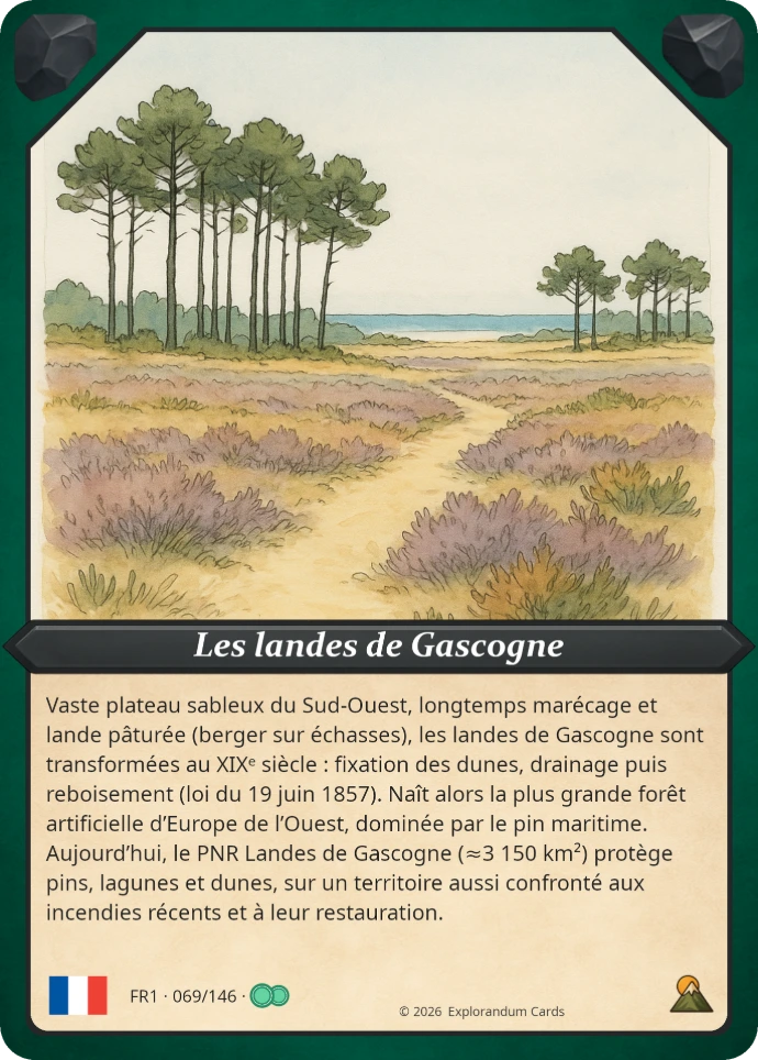 Bienvenue dans la première série de cartes à collectionner Explorandum, dédiée aux richesses culturelles de la France. Ce set inaugural célèbre la diversité du patrimoine français, des montagnes alpines aux côtes méditerranéennes. Collectionnez les saveurs emblématiques, explorez les régions et plongez dans l'histoire de plats qui ont façonné l'identité nationale. Que votre voyage de collection commence ici !